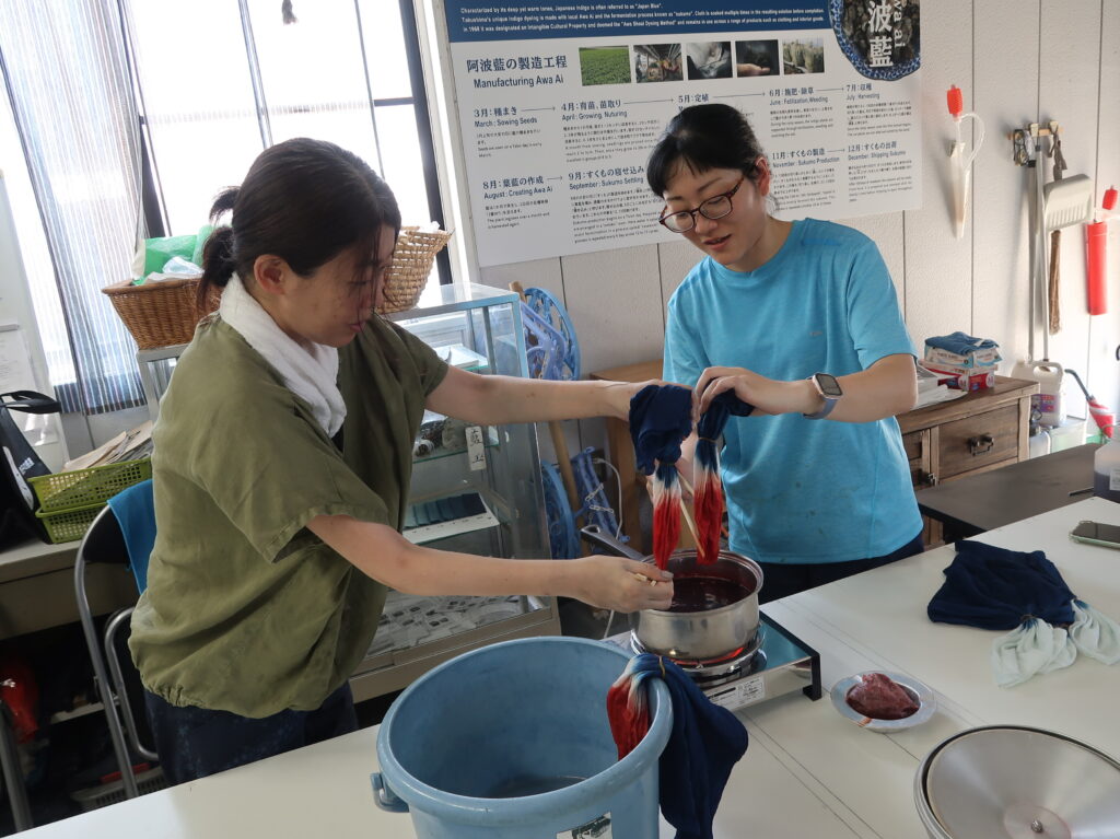 阿波しじら織や藍染にたいへん興味を持たれて、工場の様子や作業の写真を撮りながら楽しそうに仕事していましたね。「生地が藍色に変わる瞬間が好き」と、本当に藍染が好きなことが伝わってきます。毎年徳島にも来られているとのことで、今回の一週間の生活を経験したうえで、移住先の候補として考えてもらえたらうれしいです。