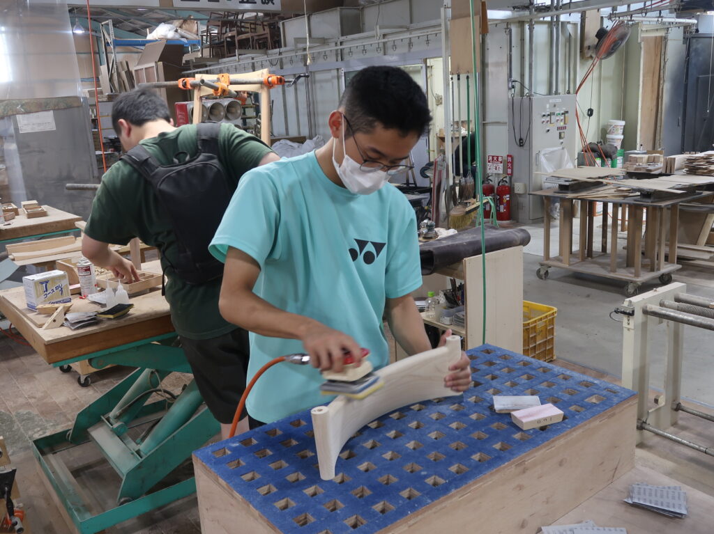 工場では木取り、研磨、組み立てまで、椅子づくりの様々な工程を体験していただきました。ご自身でもDIYをされているので、プロのモノづくりの難しさや面白さをより実感いただけたと思います。徳島での生活や地場産業の現場経験を、4月からのお仕事に活かして頑張ってください。