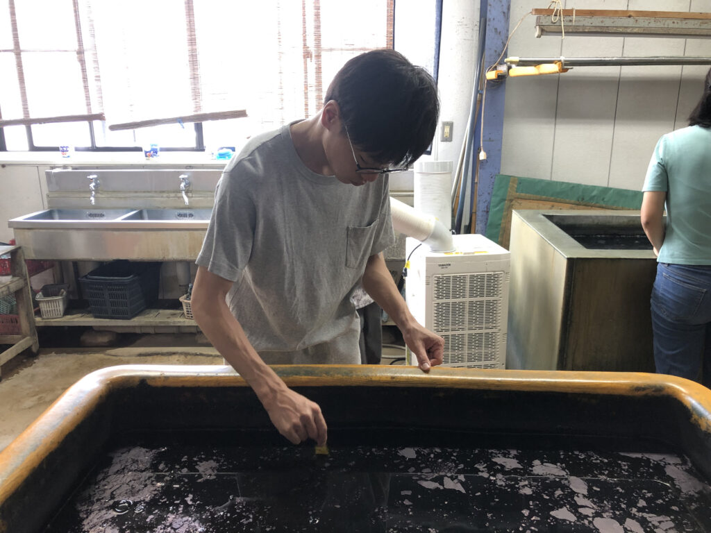 藍染に以前から興味があったこともあり、貴重な経験となりました。作業の一つひとつを丁寧に教えていただき、職人さんの技術や仕事への姿勢に触れることができ、とても勉強になりました。