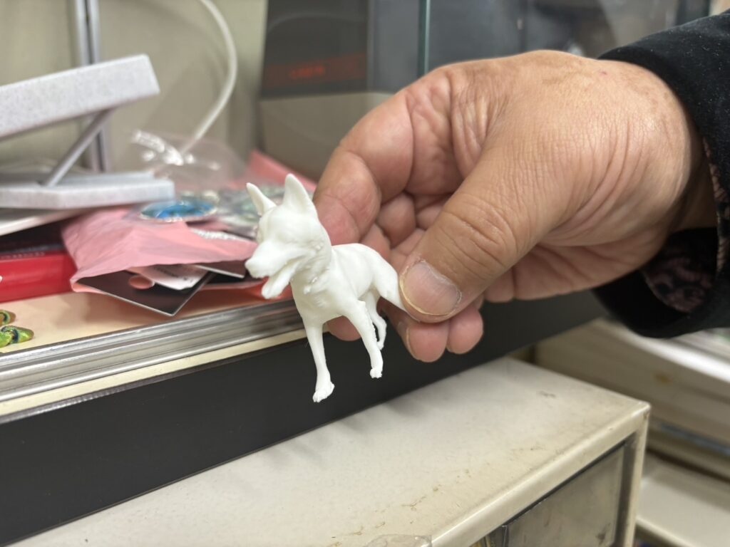 出張して集合写真や動画の撮影もしていますが、3Dプリンターで作ったキーホルダーにNFCタグを仕込んで、スマホにかざすと情報を送れる、自己紹介グッズを作ったんですけど、動画撮影の際のサービス品として今つけています。また、写真からレリーフやフィギュアを作ったりと、いろいろ研究しています。